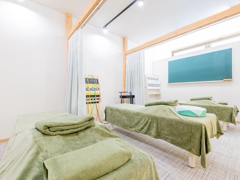 施設紹介 はるた接骨院の施設と設備についてご紹介いたします。当院は、皆さまが安心して通えるよう、快適な環境と最新の設備を整えています。 受付 待合 ウォーターサーバーあります 施術室 トムソンベッド 外観